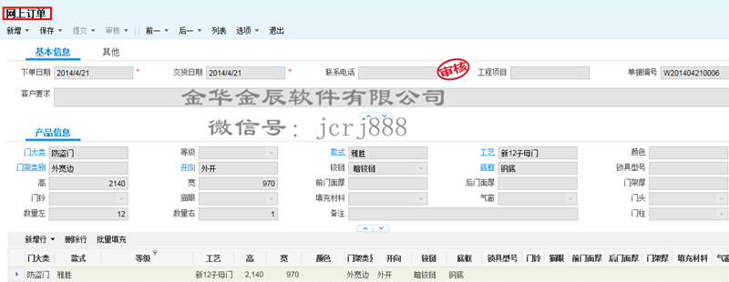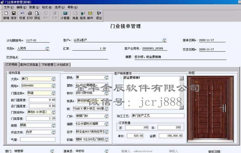 金辰門業(yè)ERP專版經(jīng)過10+年的發(fā)展,支撐大、中、小型門企的業(yè)務(wù)應(yīng)用,支持所有門類品種。