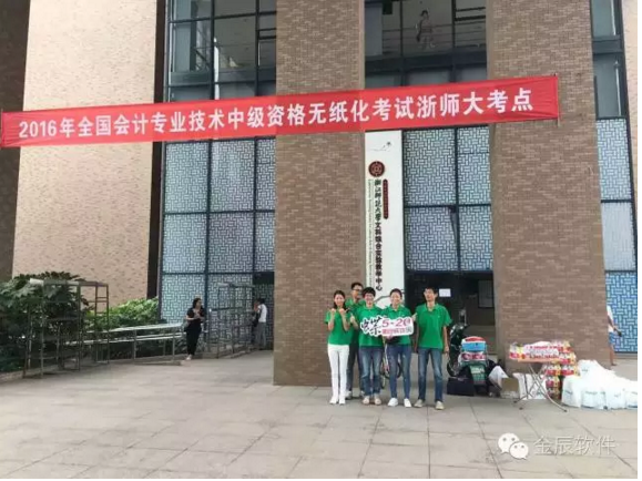 初秋的天氣溫和宜人,2016年全國(guó)會(huì)計(jì)專業(yè)技術(shù)中級(jí)資格考試今天開始啦!浙江師范大學(xué)考點(diǎn)的考生們陸續(xù)趕到考場(chǎng),準(zhǔn)備開始今天的考試。金華金辰軟件有限公司的小伙伴們已經(jīng)早早的在浙師大考點(diǎn),為每位考生加油!