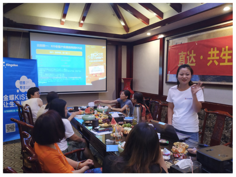 本次活動(dòng)共吸引來自金華市區(qū)的中小微企業(yè)用戶超過20多人家客戶參與,金蝶蝶金云計(jì)算有限公司浙江省區(qū)渠道事業(yè)部霍偉偉先生、金華金辰軟件有限公司副總倪小紅女士參加了此次活動(dòng)。活動(dòng)一開始,由金華金辰軟件有限公司副總經(jīng)理倪小紅女士開場(chǎng)致辭。倪小紅女士向客戶簡(jiǎn)單介紹了當(dāng)下上云的必要性以及重要性。