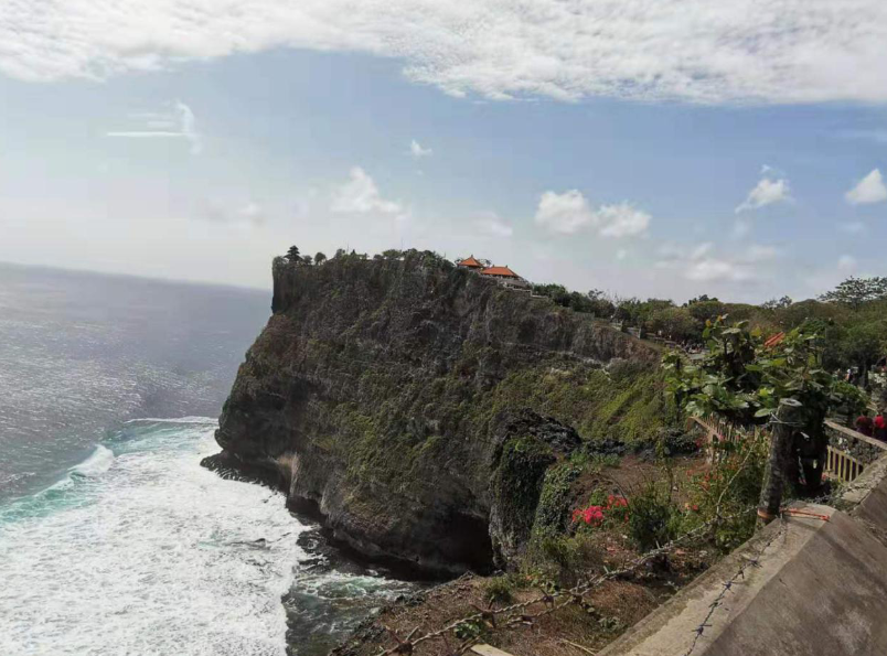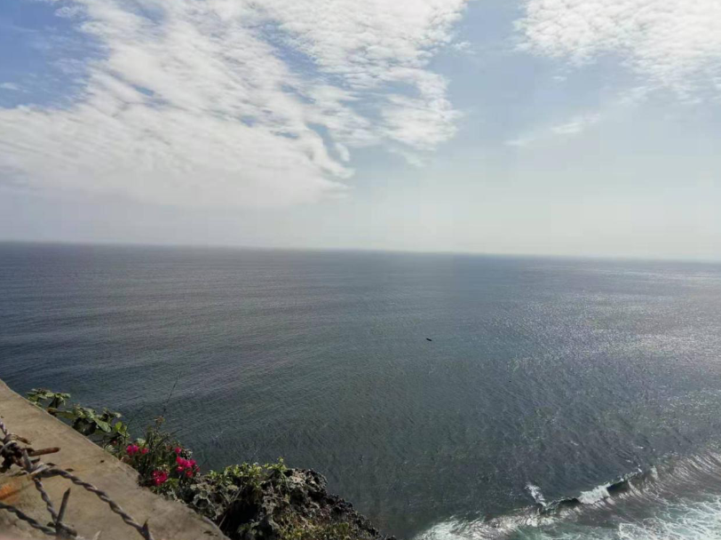 午餐后,去了烏魯瓦圖斷崖(情人崖)。這里海浪拍打著懸崖,海鳥在空中翱翔,景色非常迷人。與海神廟岸邊公園相似,情人崖上也遍布各種帶有宗教色彩和巴厘島特色的石雕,這些雕塑造型圓潤(rùn),線條卻無(wú)比繁復(fù),足可見(jiàn)出工匠的巧手妙思。更有熱帶風(fēng)情的是,不少神像的耳邊還插著一朵當(dāng)?shù)刈疃嘁?jiàn)的奶黃色雞蛋花,巴厘人的細(xì)膩多情可見(jiàn)一斑。在情人崖有許多猴子,特別猖獗,會(huì)搶東西,除非用吃的或錢引誘,要不沒(méi)法取回。