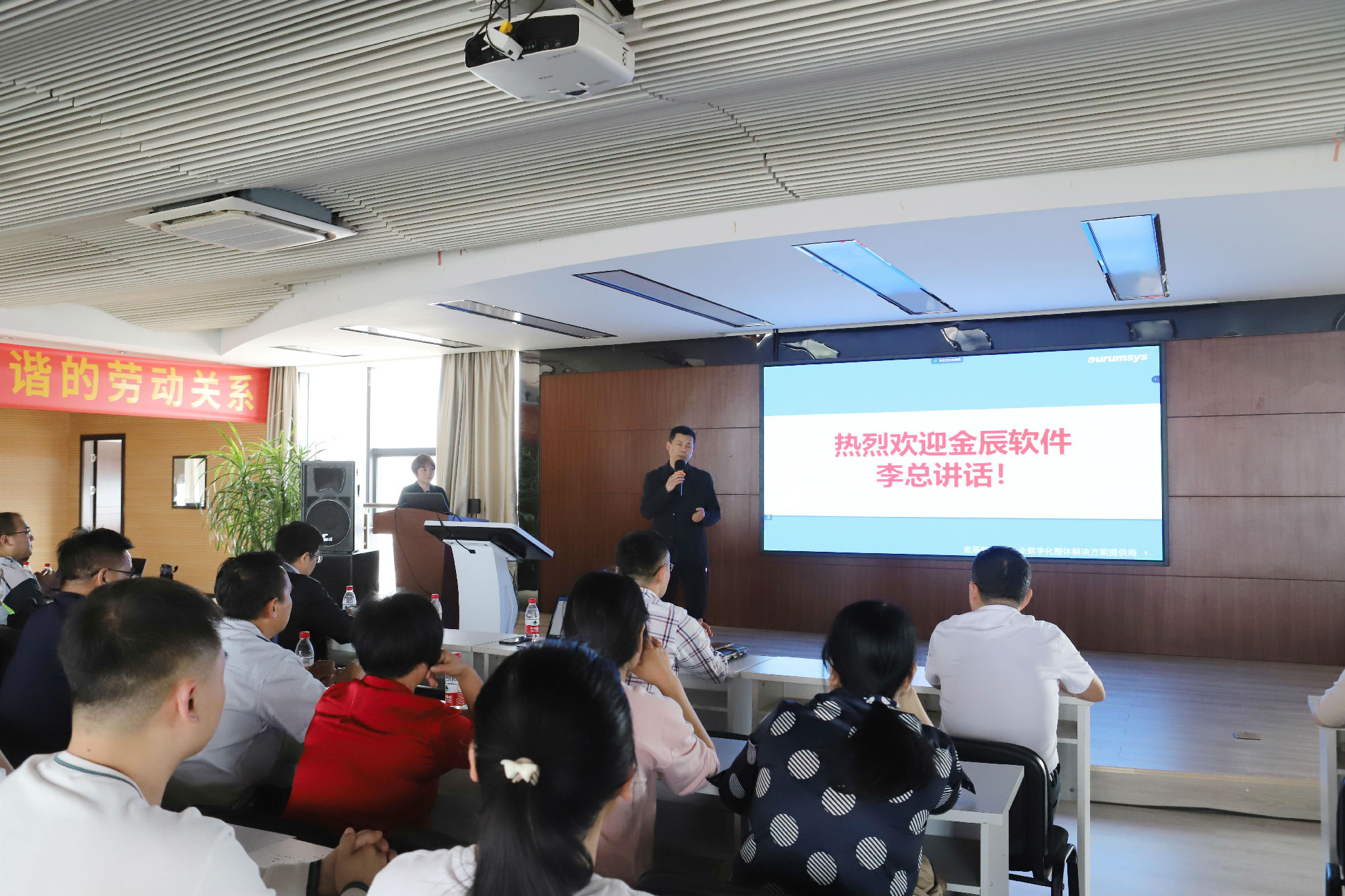 隨后,金華金辰軟件李總致辭中表達(dá)了完成該項目的信心與決心,李總認(rèn)為信息化實施不僅僅是企業(yè)應(yīng)用系統(tǒng)搭建信息化的過程,更是企業(yè)梳理流程、規(guī)范業(yè)務(wù)、改善管理的重要手段,是將軟件產(chǎn)品與企業(yè)業(yè)務(wù)結(jié)合的過程,可以幫助企業(yè)打造一支富有創(chuàng)新精神,精通企業(yè)管理與信息化的隊伍。