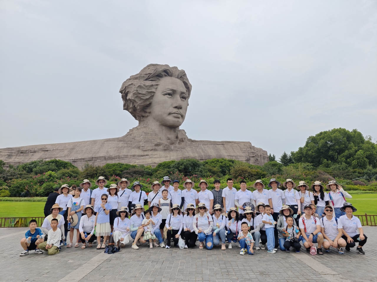 網(wǎng)紅城市長沙是第一站,大家乘坐電瓶車來到橘子洲頭,感受毛主席站在橘子洲頭發(fā)出的“問蒼茫大地,誰主沉浮”的天問,領略洲上的優(yōu)美景色。隨后大家一起在毛主席紀念雕像前留下合影。